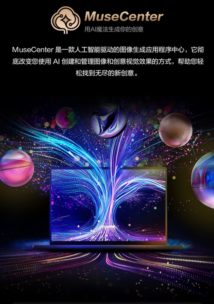 基于对创作流程的精准洞察,华硕ProArt创162025扩容华硕独有的人工智能应用程序库,新增引入“MuseCenter”这一人工智能创意应用,协同ProArt创作者中心、StoryCubeAI多媒体中心、“小硕知道”AI智能助手等AI应用和机身C面的华硕创意旋钮,以软硬件协同创新的解决方案,让创意之旅从初稿到最终版本变得更轻松、顺畅、强大。