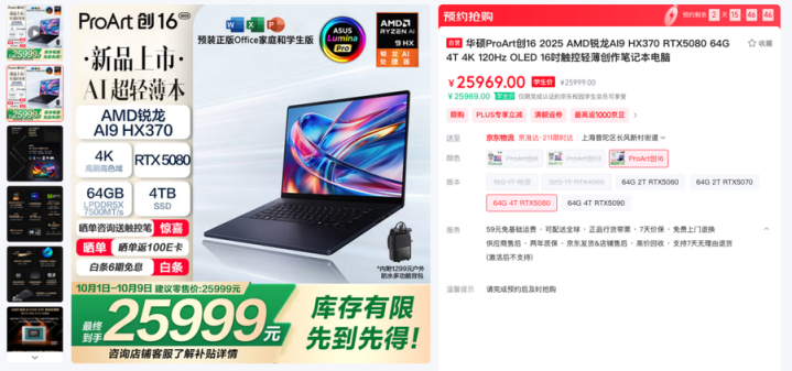 华硕ProArt创162025(RTX5080):https://item.jd.com/100278101130.html配资资讯平台