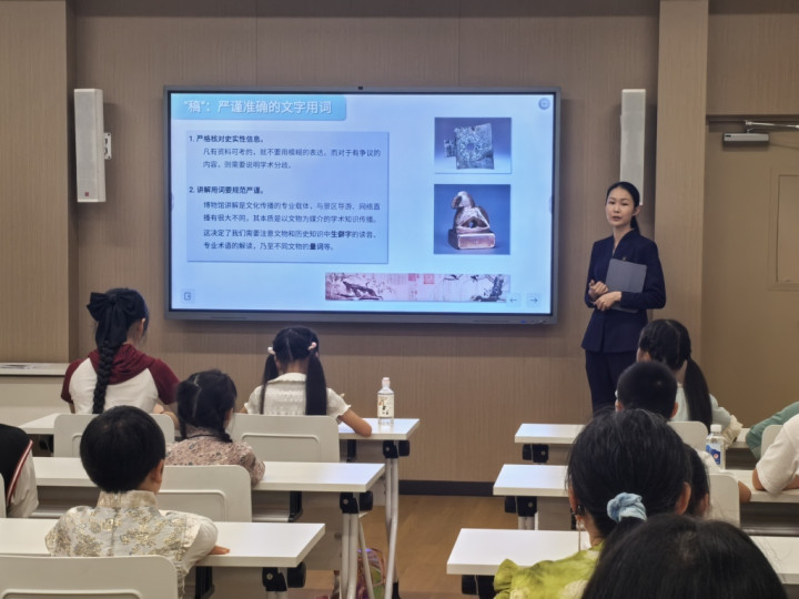 7月26日,“小小讲解员”们在上海博物馆东馆参与培训。