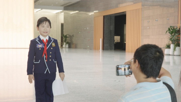 方煜正为十佳“小小讲解员”拍摄做最后的准备。