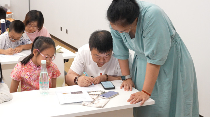 民办尚德实验学校10岁的李婧萍本来正在旅途中,得知培训的消息,非常珍视这次机会,和家长商量提前结束了行程前来参与培训。陪同孩子的母亲杨帆表示,在与孩子携手了解文物的过程里,尤其通过这次培训,她感到孩子和国宝之间的距离正不断拉近。“非常感谢上博提供了这样一个沉浸式的平台,让文化传承变得鲜活,也让我看到了一个更加自信勇敢的孩子。”